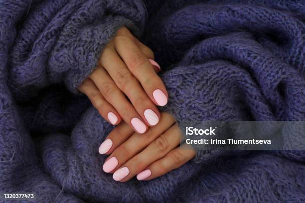 Start by giving your nails a coat of pastel pink lacquer to obtain this effect. Once the polish has dried, use a small brush or nail tape to make stripes. Or, you could create cute geometric designs. You can also use glitter or metallic studs to add a little shine.