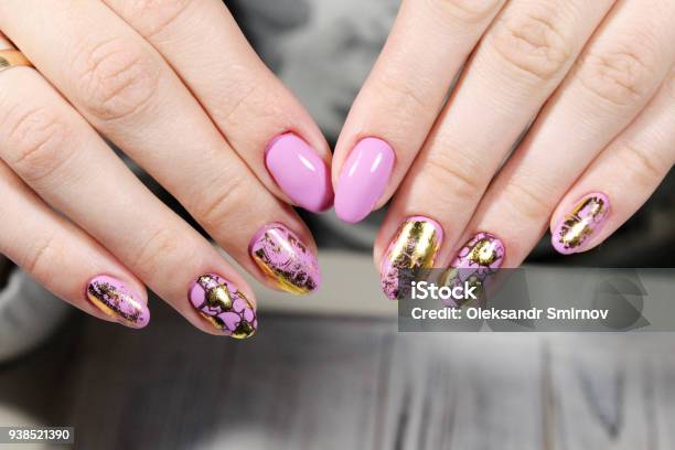 Pink and gold foil nails are an excellent option for any special occasion. They are also a terrific way to glam up your regular attire.