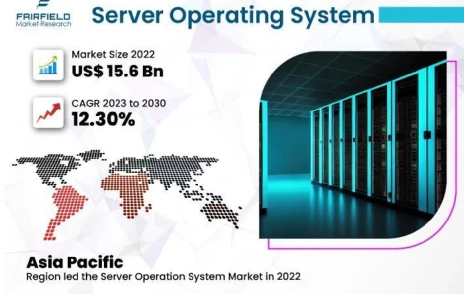 According to Fairfield Market Research, the Server Operating Systems Market, valued at approximately US$15.6 billion in 2022, is set to experience remarkable growth, reaching an estimated US$35.1 billion by 2030. This substantial market expansion is projected to occur at a robust CAGR of 12.3% from 2023.